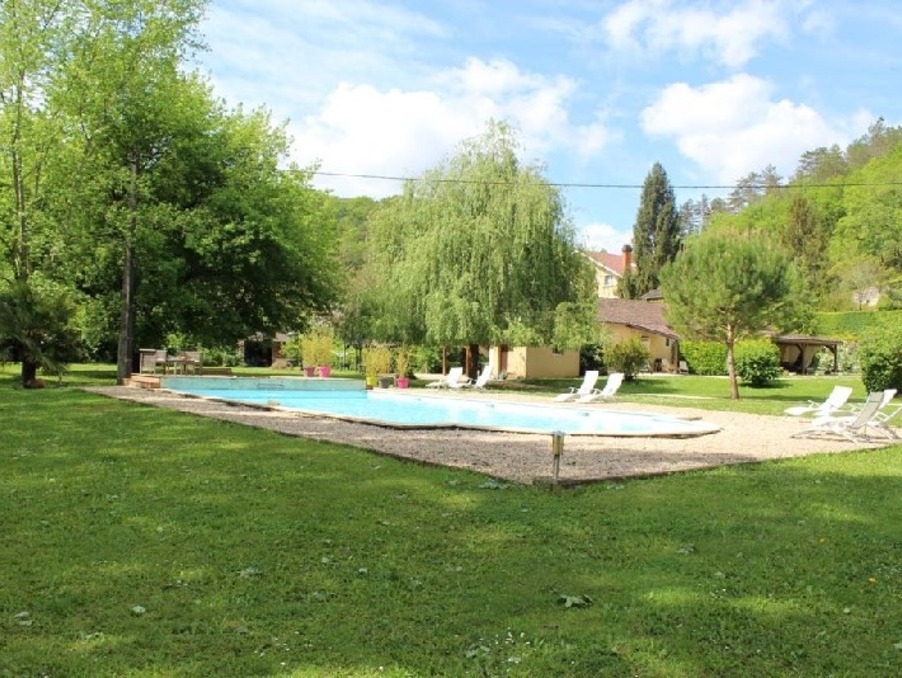 A l'entrée d'un village typique du Périgord Noir bordé par le Céou, avec commerce et restaurants accessibles à pied, sur un terrain de 6812 m² arboré et fleuri, ensemble immobilier comprenant une maison d'habitation à rafraichir, 3 gîtes en très bon état et une piscine.