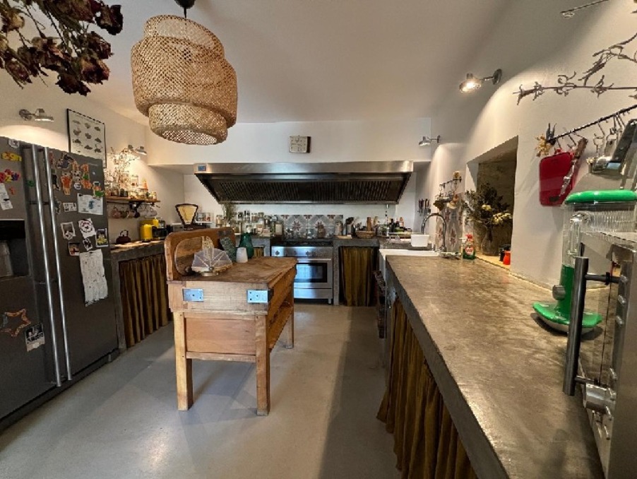 Entrée sur séjour (40m²) avec poêle dans cantou, pierres et poutres apparentes, cuisine équipée(29m²) ouverte sur la salle à manger (17m²), accès à la terrasse avec vue sur la vallée, salon (27m²), dressing, petit salon (ces 2 pièces peuvent être aménagées en chambre et salle de bains supplémentaires),wc, buanderie.